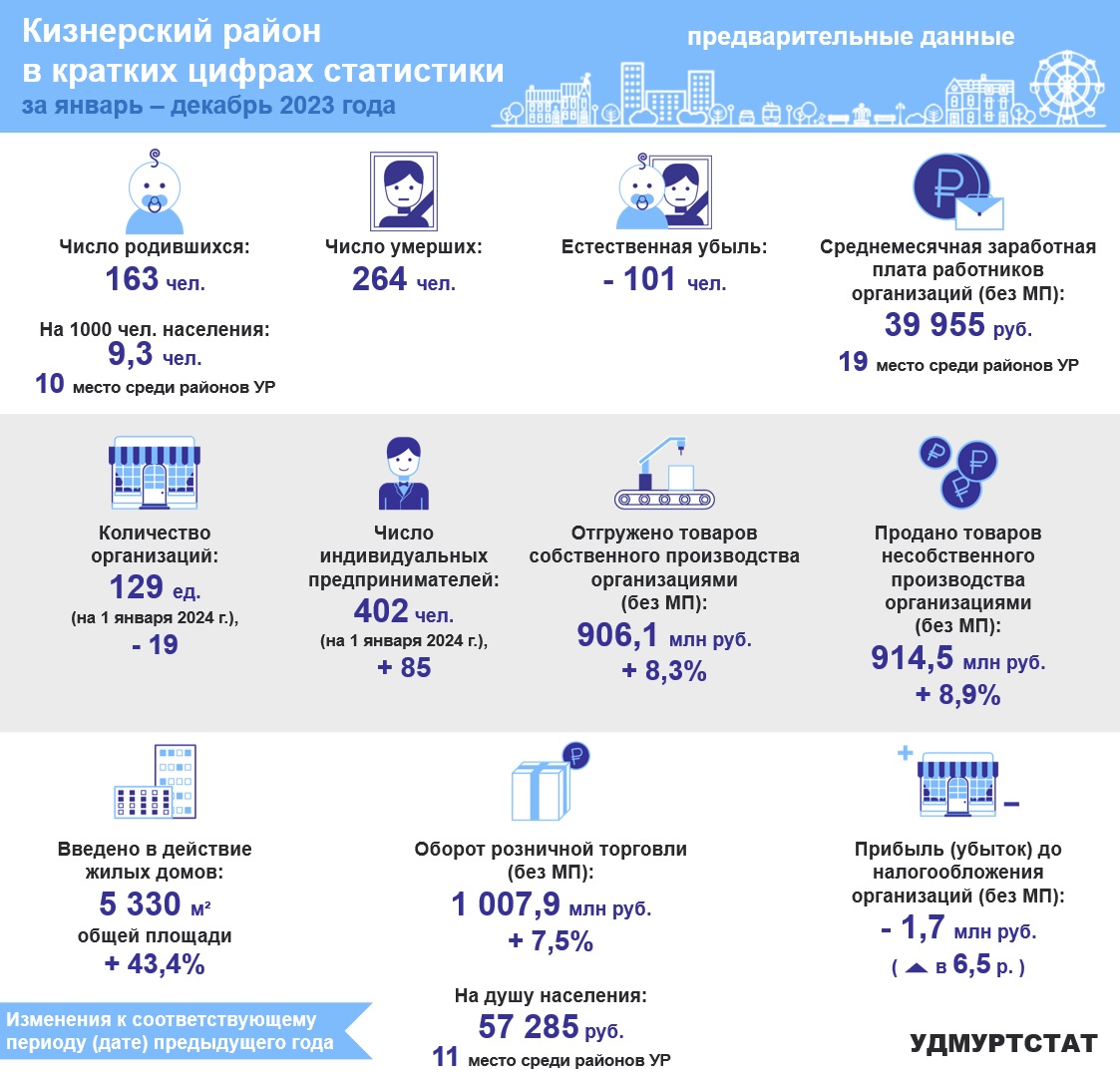 Удмуртстат информируетТерриториальный орган федеральной службы государственной статистики по Удмуртской Республике (Кизнерский район)
